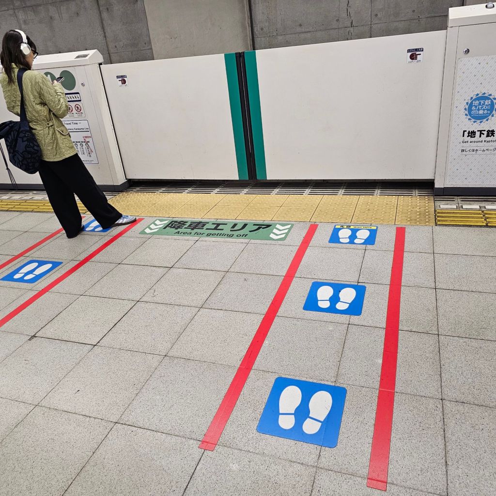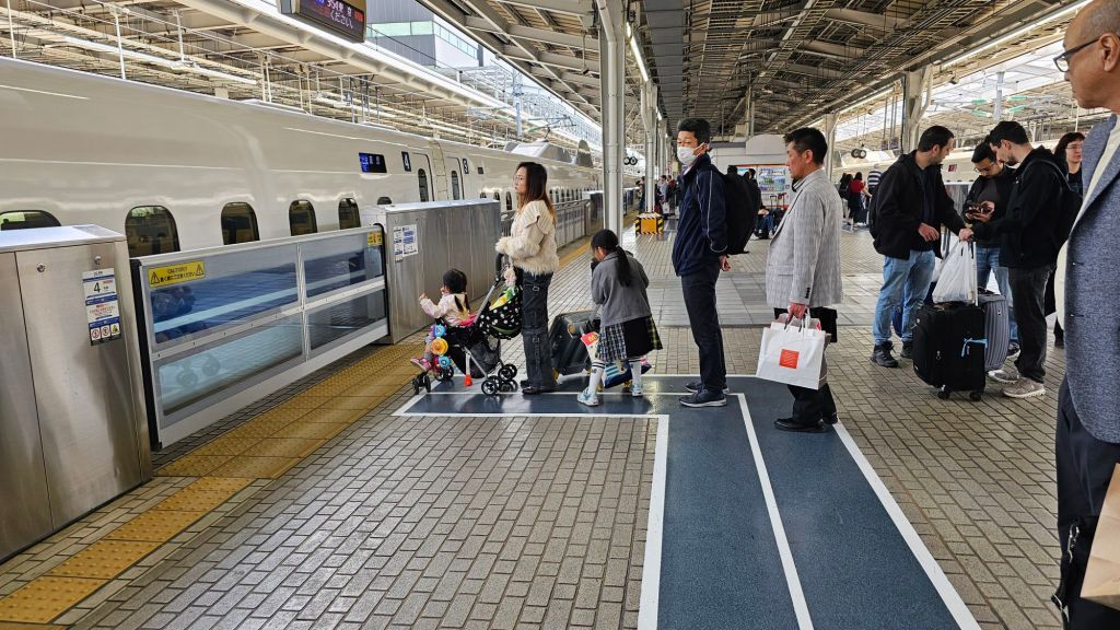 La fréquentation des transports en communs est caractéristique de cet aspect du climat social : discipline et respect des distances y sont particulièrement codés. Des files d’attente bien alignées pour entrer dans le métro aux sas toujours ouverts ne se fermant qu’en cas d’infraction (le contraire de chez nous !) en passant par les escaliers où marcher du mauvais côté fait de suite tache, un ordre qui ne se dit pas s’impose et un personnel discret et serviable est d’une tenue impeccable. Prendre le train est aussi particulièrement agréable : toujours à l’heure avec pourtant des cadences rapides, le fameux Shinkansen, toujours propre et confortable, relie les pôles économiques avec célérité et grande efficacité. Ici aussi le personnel est impressionnant, saluant à chaque entrée et sortie de wagon ! Se déplacer en ville ne tolère pas plus d’écarts : le respect des feux pour les piétons est incontournable. Peut-être une nécessité dans un pays où la densité est trois fois celle de la France ?