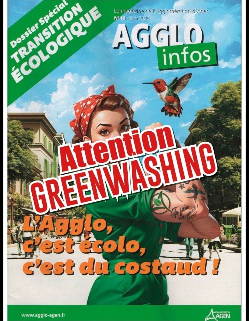 🌳 Ce greenwashing participe d’une stratégie bien connue : neutraliser l’écologie politique en récupérant ses symboles. Or, l’écologie n’est pas une posture. Elle exige des choix courageux, des politiques sociales fortes et une remise en cause des inégalités. Tout ce qui manque justement à Agen et son agglomération aujourd’hui ! La preuve au fil des 28 pages du document distribué dans les boîtes aux lettres des habitants…