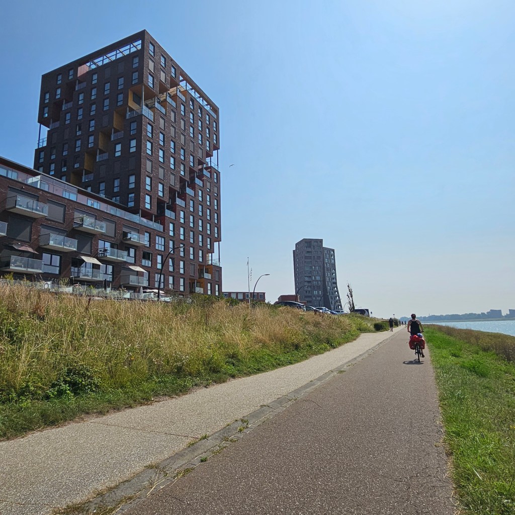 L’arrivée à Rotterdam aura rempli toutes ses promesses avec une fantaisie bien appréciable des concepteurs de cette Eurovélo19 : une dernière étape marquée par une liaison en bateau pour traverser le premier port d’Europe et sixième de la planète.